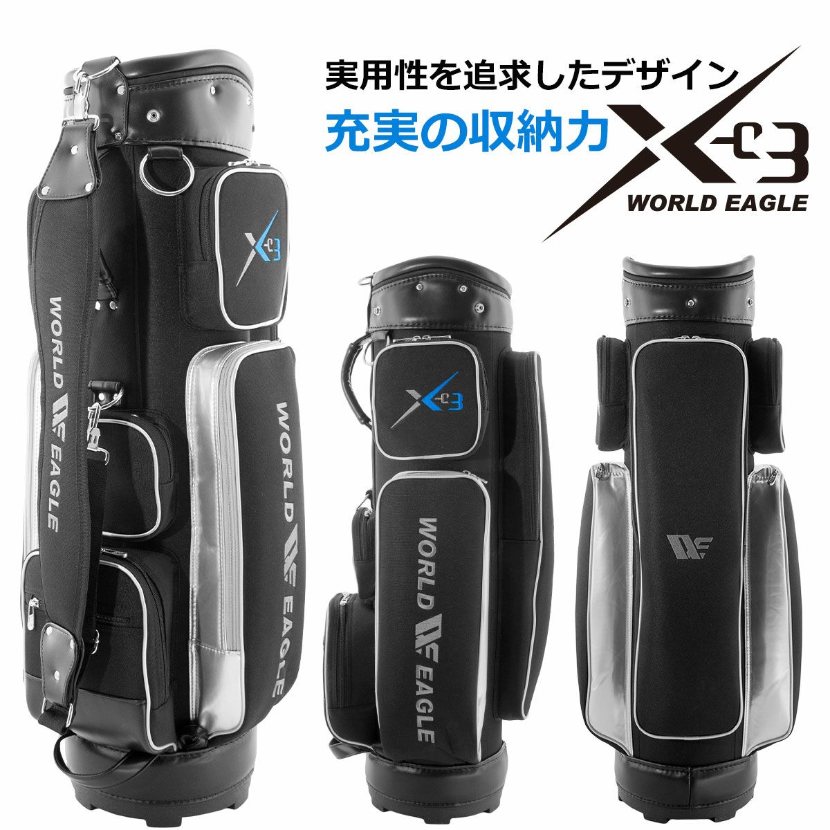 上質な高級感漂うオシャレなキャディバッグ ワールドイーグル ゴルフバッグ 上質な高級感漂うオシャレなキャディバッグ CBR5 ふんだんにエナメルを使用 清涼感のある大人の風格 刺繍を要所に施した大胆なデザイン カートバッグ キャディーバッグ メンズ レディース