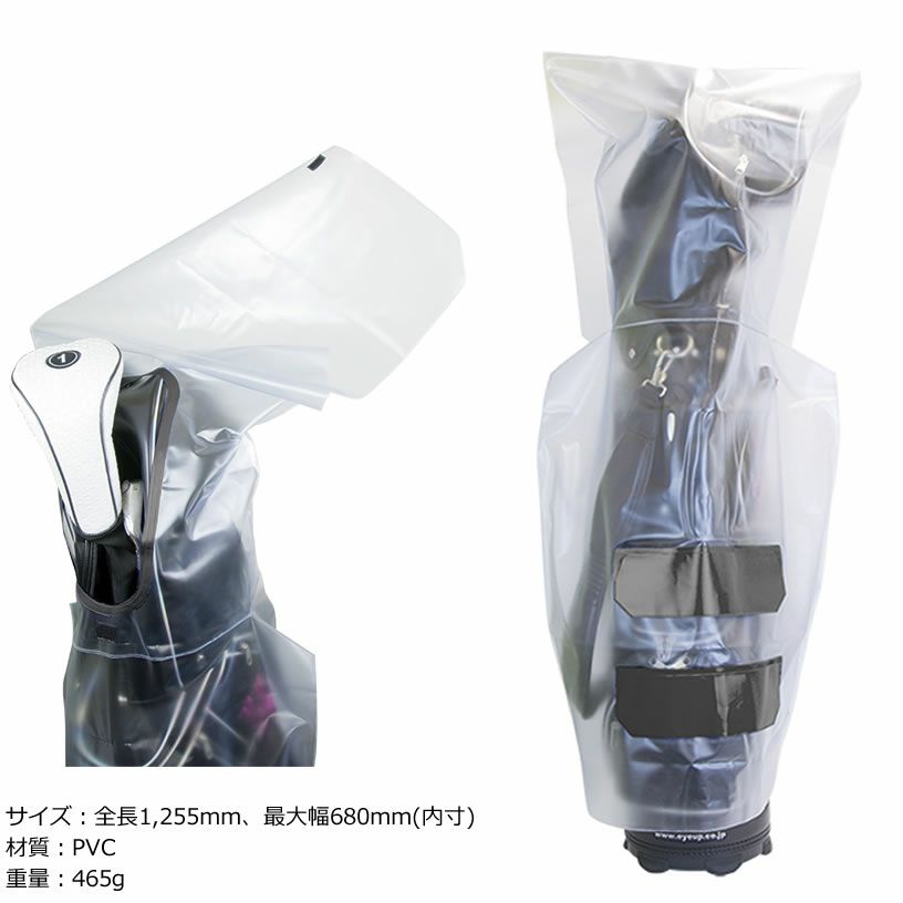 キャディバッグを水濡れから守る軽量レインカバー。
