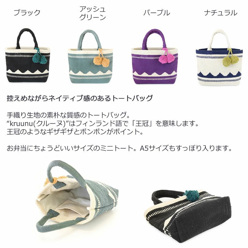 手織り生地の素朴な質感のトートバッグ