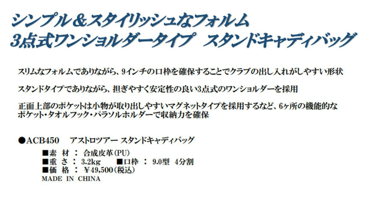 アストロツアー 3点式ワンショルダータイプ スタンドキャディバッグ ACB450