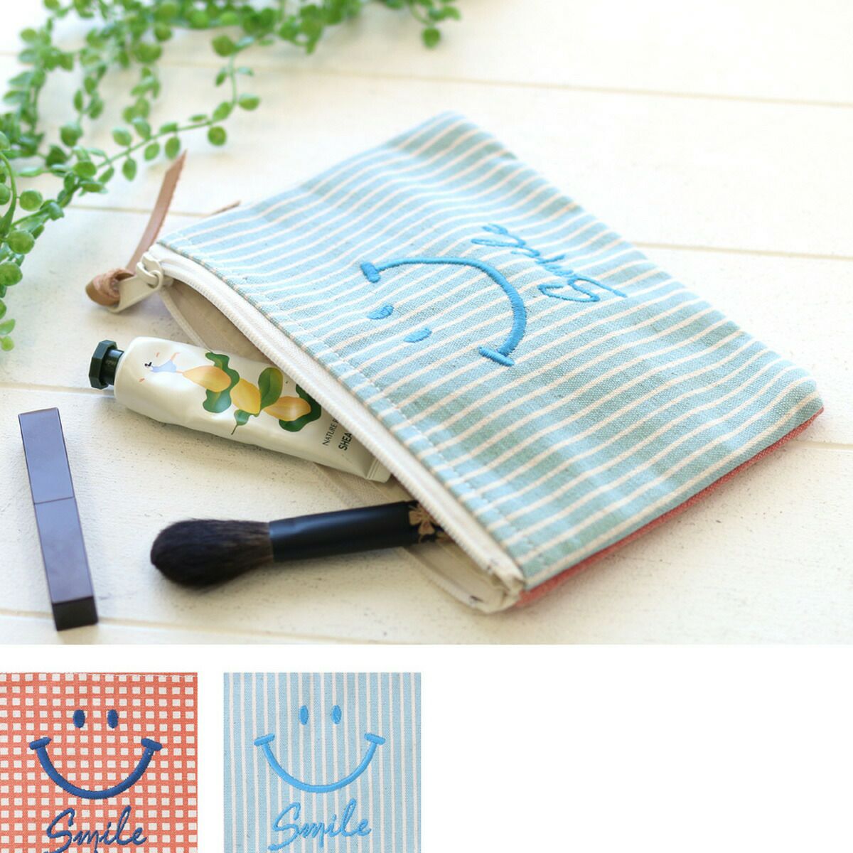 大人気のスマイル刺繍ポーチ
