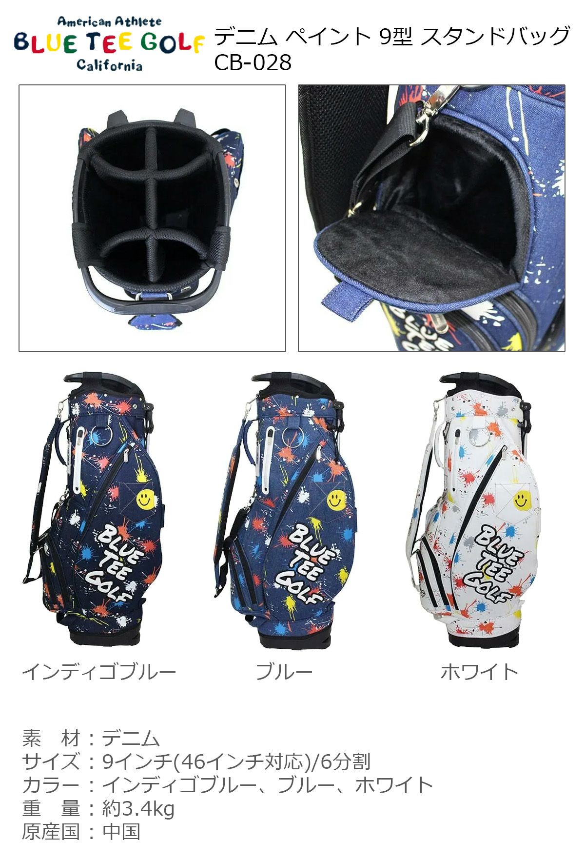 ブルーティーゴルフ デニム ペイント 9型 スタンドバッグ CB-028 【IR】