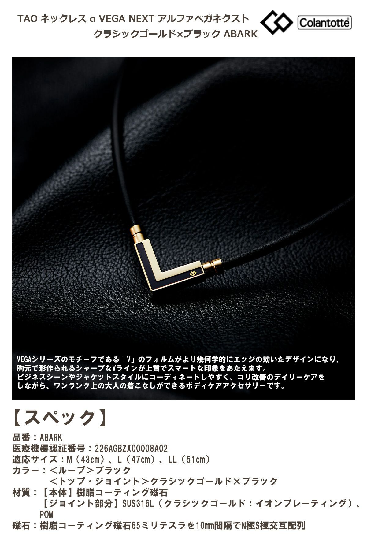 Colantotte コラントッテ TAO ネックレス α VEGA NEXT アルファベガネクスト クラシックゴールド×ブラック ABARK