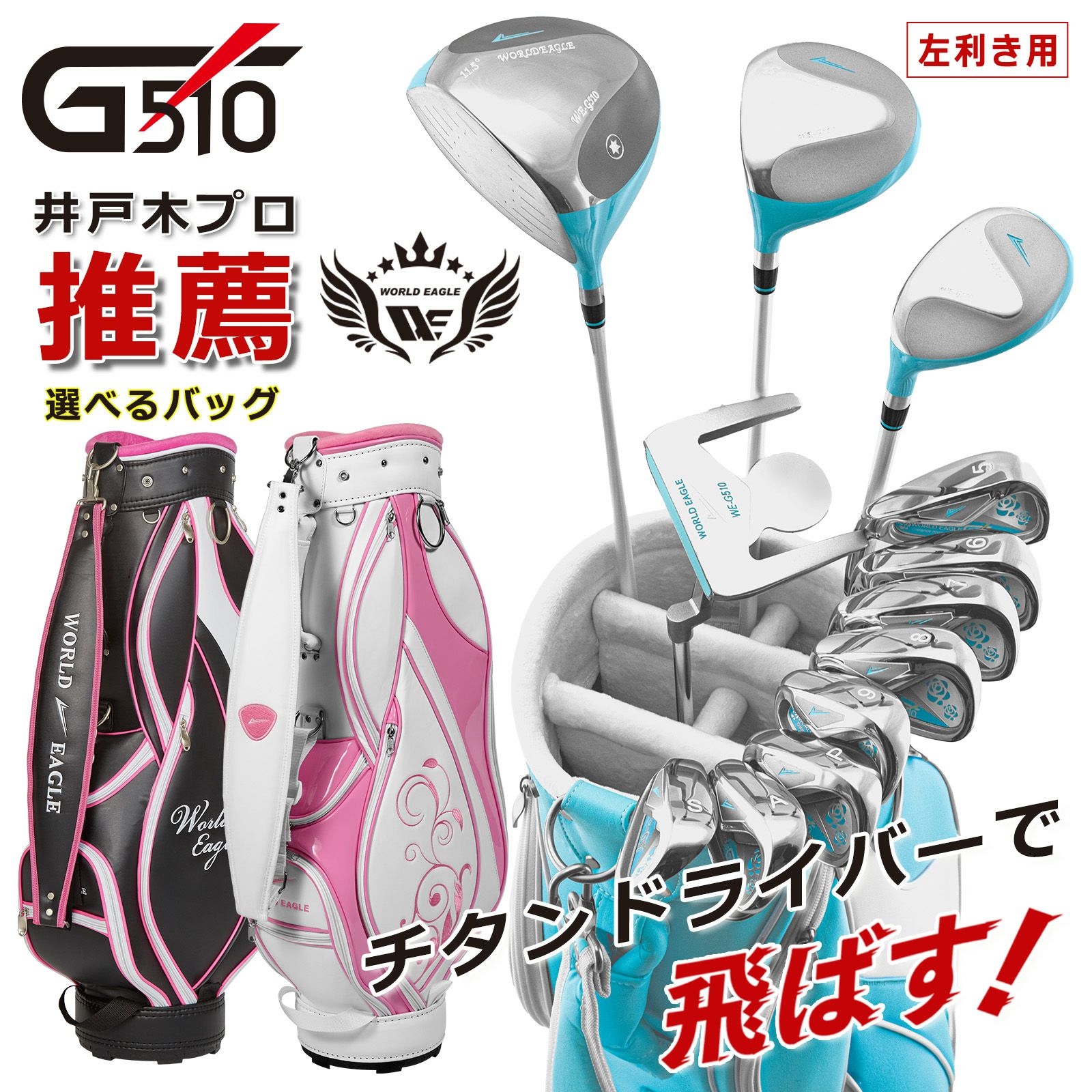 ワールドイーグル WE-G510 レディース 16点(12本)クラブセット 選べる専用キャディバッグ付 左用