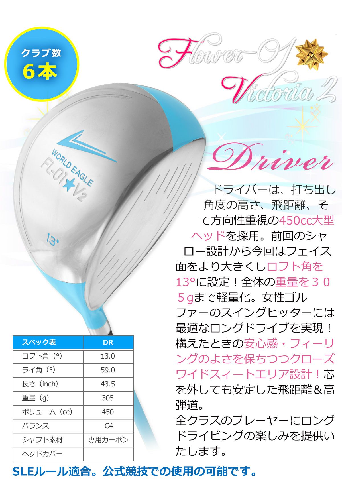 4. 桜のPAR SALE ワールドイーグル FL-01★V2 アクアブルー レディース ハーフ 8点(6本 FW入)スターターセット セルフスタンドクラブケース付 右用