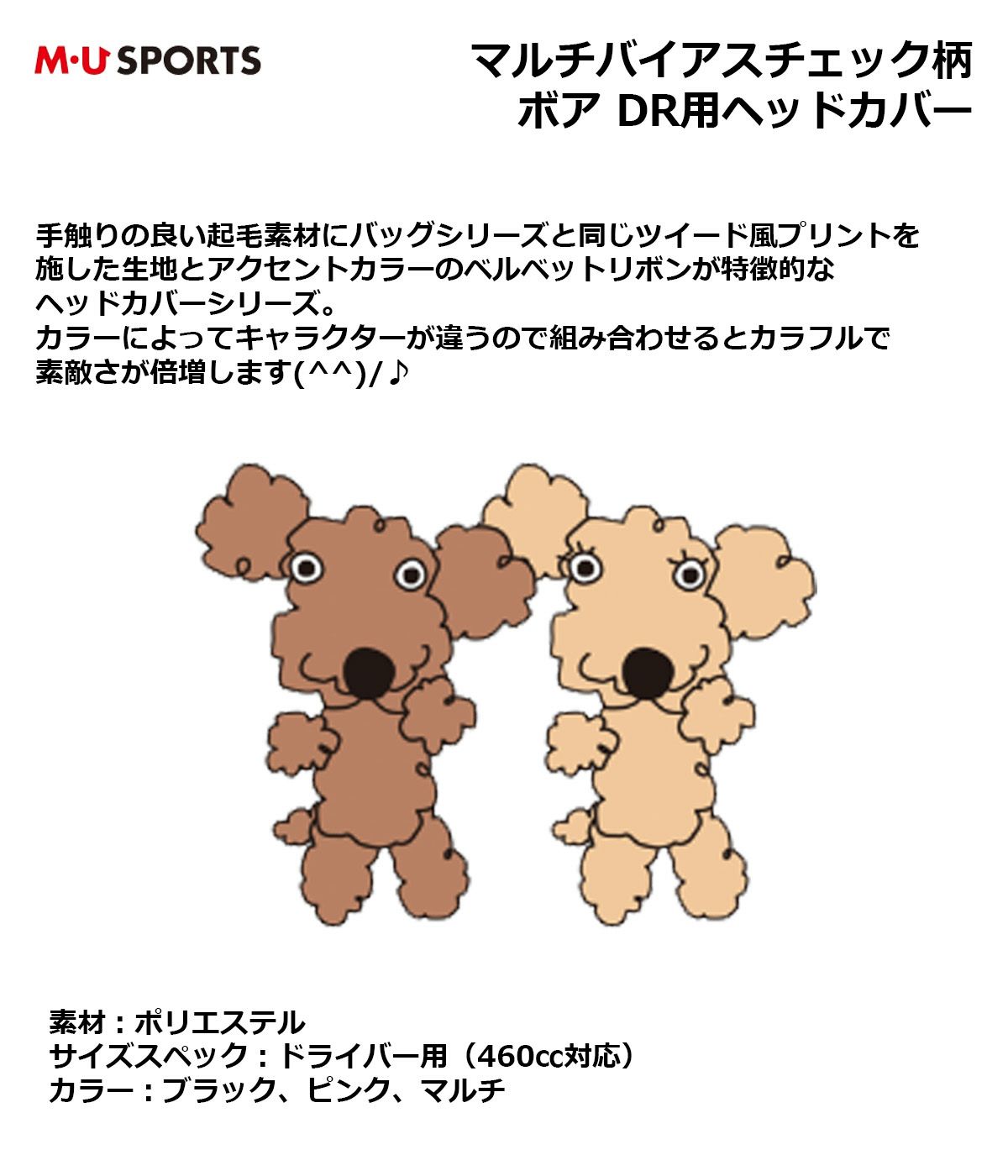 エムユースポーツ マルチバイアスチェック柄 ボア ドライバー ヘッドカバー 【IR】