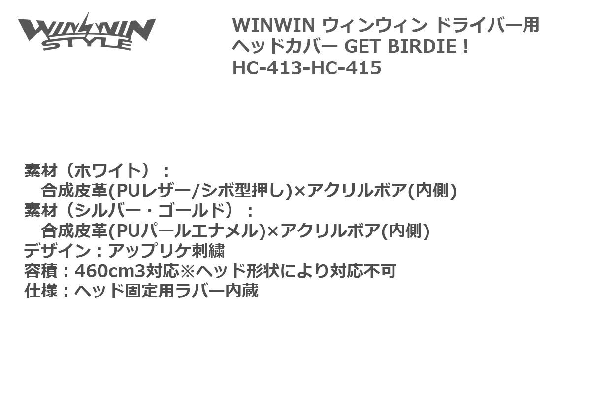 ウィンウィン ドライバー ヘッドカバー GET BIRDIE! HC-413-HC-415 【IR】