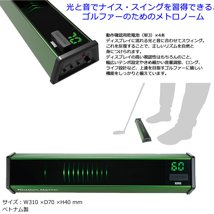 ディスプレイの高い視認性はもちろんのこと、幅広いテンポ設定やきめ細かい音量調節、ロング、ライフ設計など、上達を目指すゴルファーに嬉しい機能をしっかりと備えています。