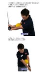 左右の腕と胸で、ボールを挟んでスウィングすることで、腕を上体と連動させて腰を回転させ、正しい体の動きを身につけます。