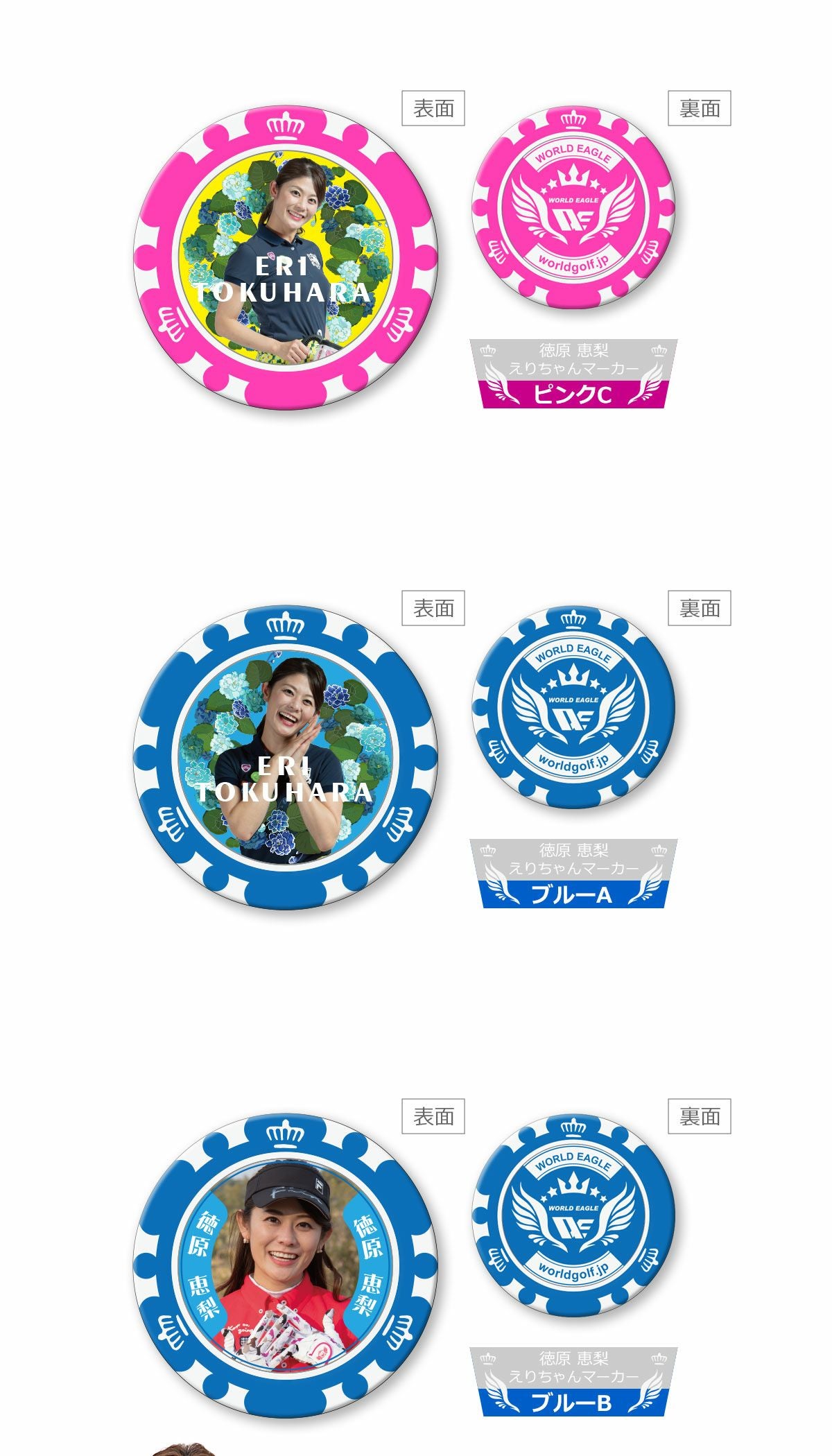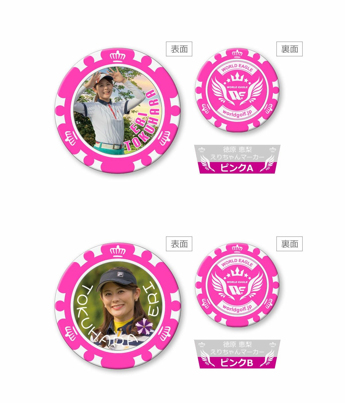 記念品や贈り物にも最適 当店限定 ゴルフマーカー! 徳原 恵梨 カジノチップ風えりちゃんマーカー ゴルフ番組でテレビ出演中! タレント ラウンド用品 ギフト プレゼント グリーンマーカー ピンク ブルー