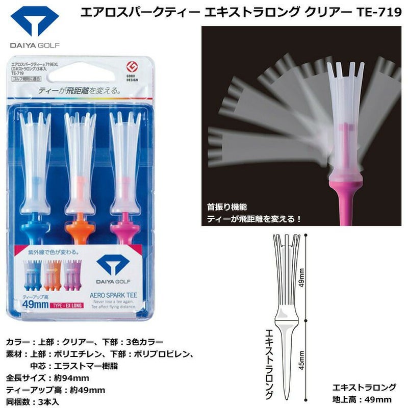 ダイヤゴルフ エアロスパークティー エキストラロング クリアー TE-719 【IR】
