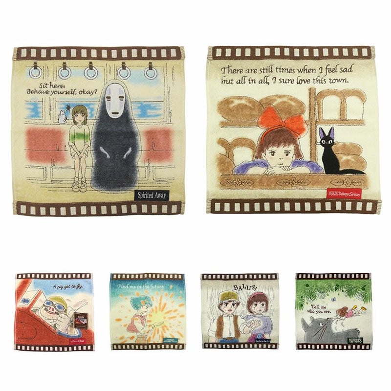 ジブリ映画のワンシーンと台詞が映画フィルムのようにデザインされたタオルです。