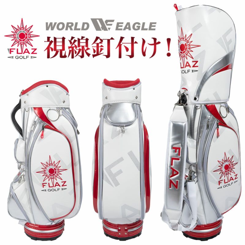 バッグ 人気 メンズ おしゃれ ラメ フード エナメル おすすめ ゴルフ 刺繍 かっこいい 派手 軽量 9.5型 高級プリント ワールドゴルフ WORLD GOLF ワールドイーグル WORLD EAGLE フレッズ FLAZ 男性 キャディーバッグ カートバッグ ゴルフバッグ クラブバッグ 白 赤 アンブレラ受け フード ショルダー