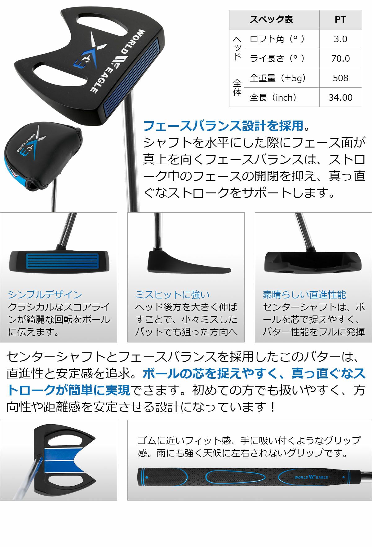 - マレット パター用ヘッドカバー