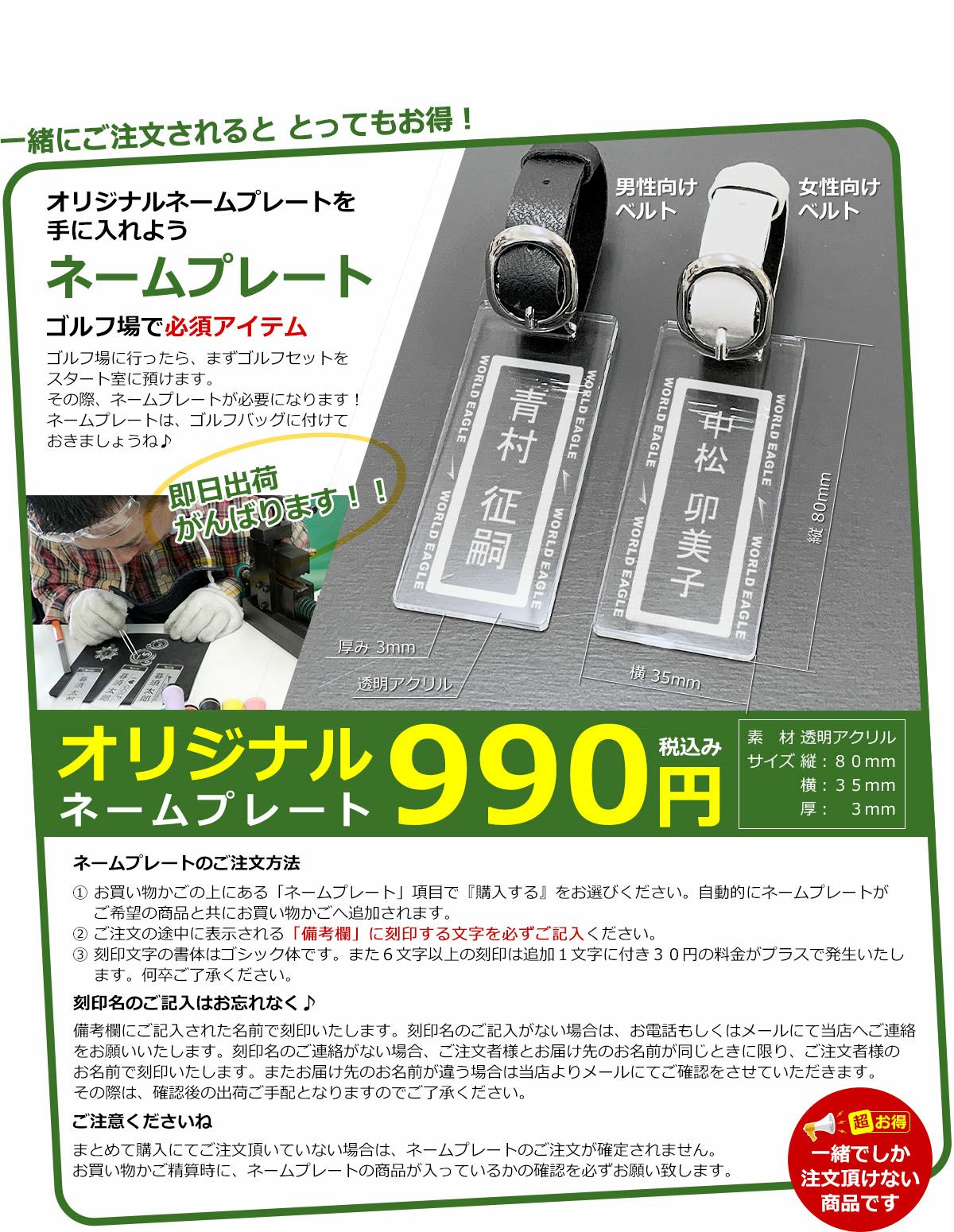 - ゴルフ用ネームプレート