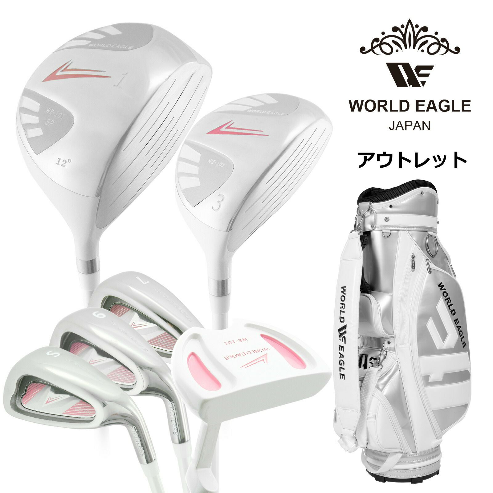 アウトレット 初心者向け WE 101 レディース ゴルフクラブセット ホワイト 右利き用 CBR5シルバー 女性用 わけあり
