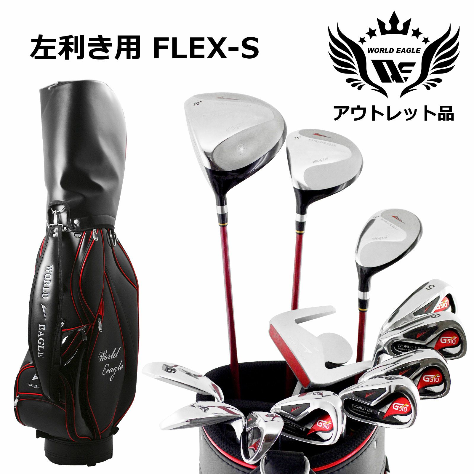 アウトレット品(わけあり 展示 撮影) WE G510 メンズゴルフクラブセット G510 キャディーバッグ付き 左利き用 フレックスR