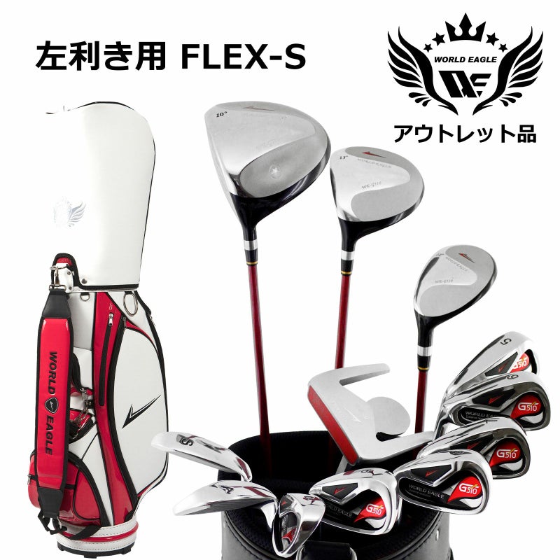 アウトレット品(わけあり 展示 撮影) WE G510 メンズゴルフクラブセット CBX003 ホワイト レッド キャディーバッグ付き 左利き用 フレックスS 展示品