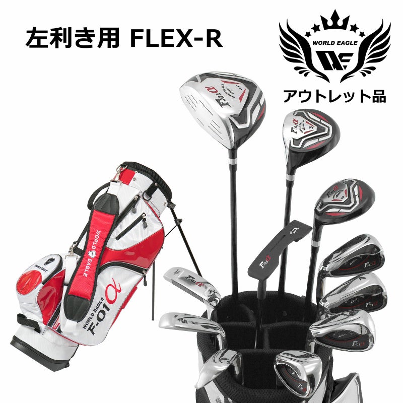 アウトレット品(わけあり 展示 撮影) WE クロスF-01αメンズゴルフクラブセット F-01αスタンドバッグ ホワイトレッド 左利き用 フレックスR