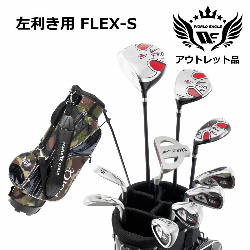 アウトレット品(わけあり 展示 撮影) 初心者 WE F-01αメンズゴルフクラブセット F-01スタンドバッグ付き 迷彩ブラック 左利き用 フレックスS