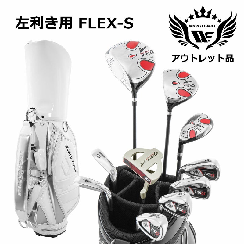 アウトレット品(わけあり 展示 撮影) WE F-01αメンズゴルフクラブセット CBR5 ホワイトキャディーバッグ付き 左利き用 フレックスS