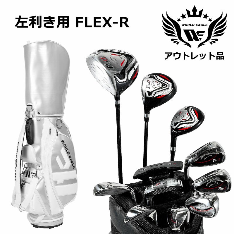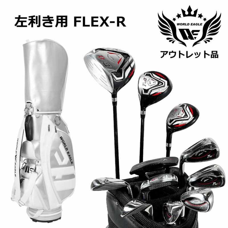 アウトレット品(わけあり 展示 撮影) WE クロスF-01αメンズゴルフクラブセット CBR5 シルバー キャディーバッグ付き 左利き用 フレックスR