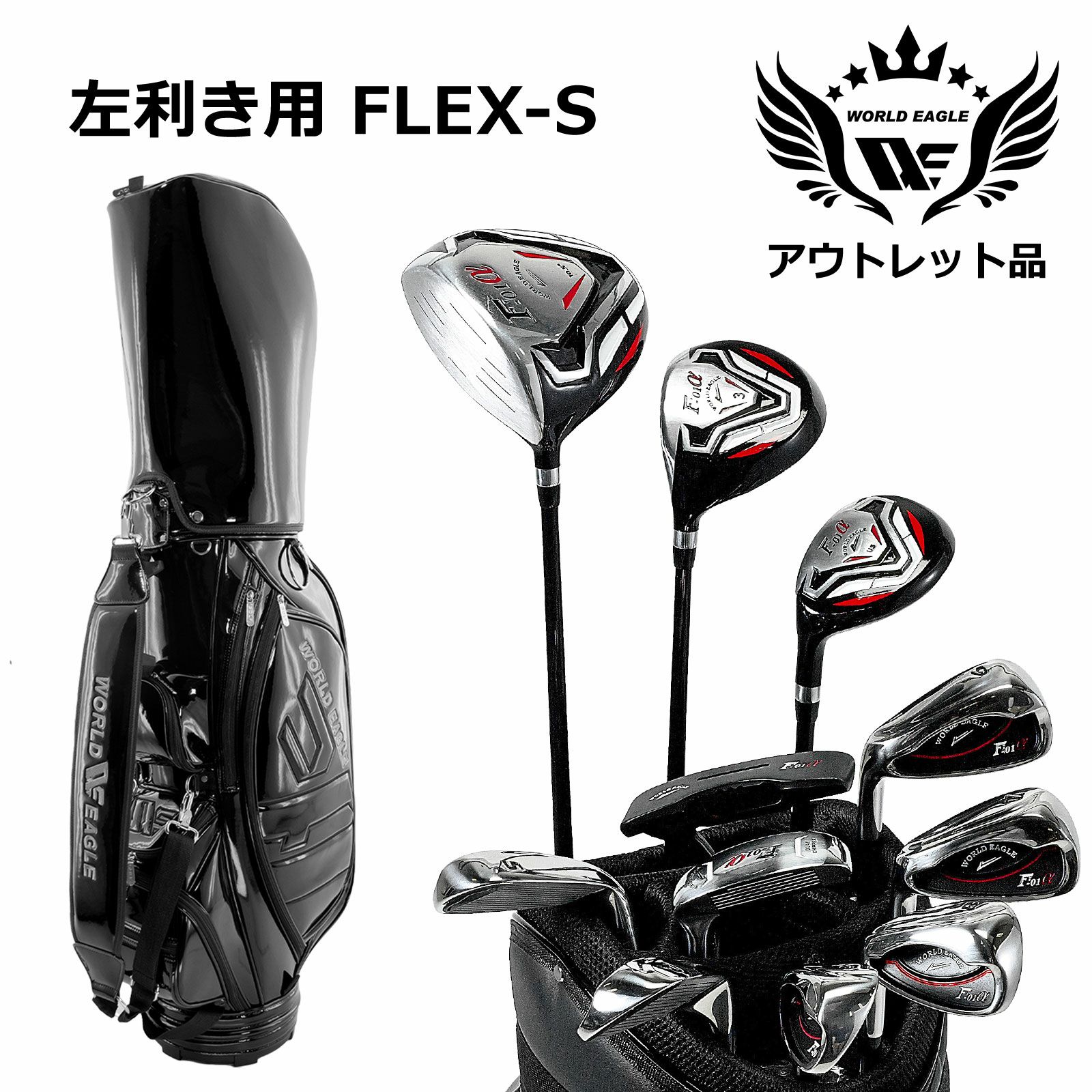 アウトレット品(わけあり 展示 撮影) WE クロスF-01αメンズゴルフクラブセット CBR5 ブラック キャディーバッグ付き 左利き用 フレックスS