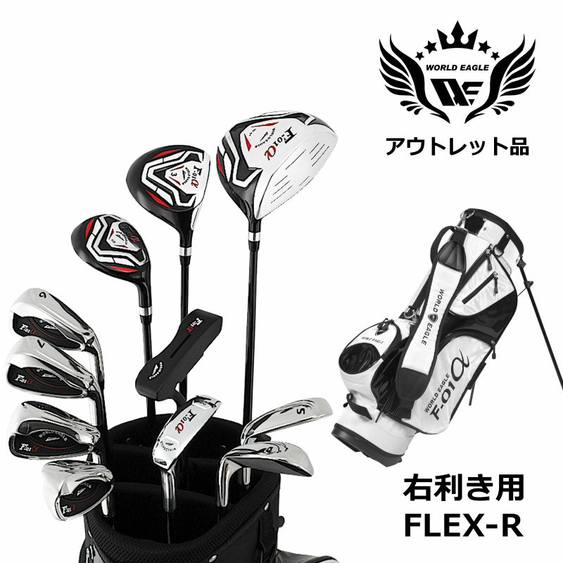 アウトレット 訳あり メンズゴルフセット ワールドイーグル クロスモデル F-01α フルセット 右利き用 フレックスR ホワイトバッグ