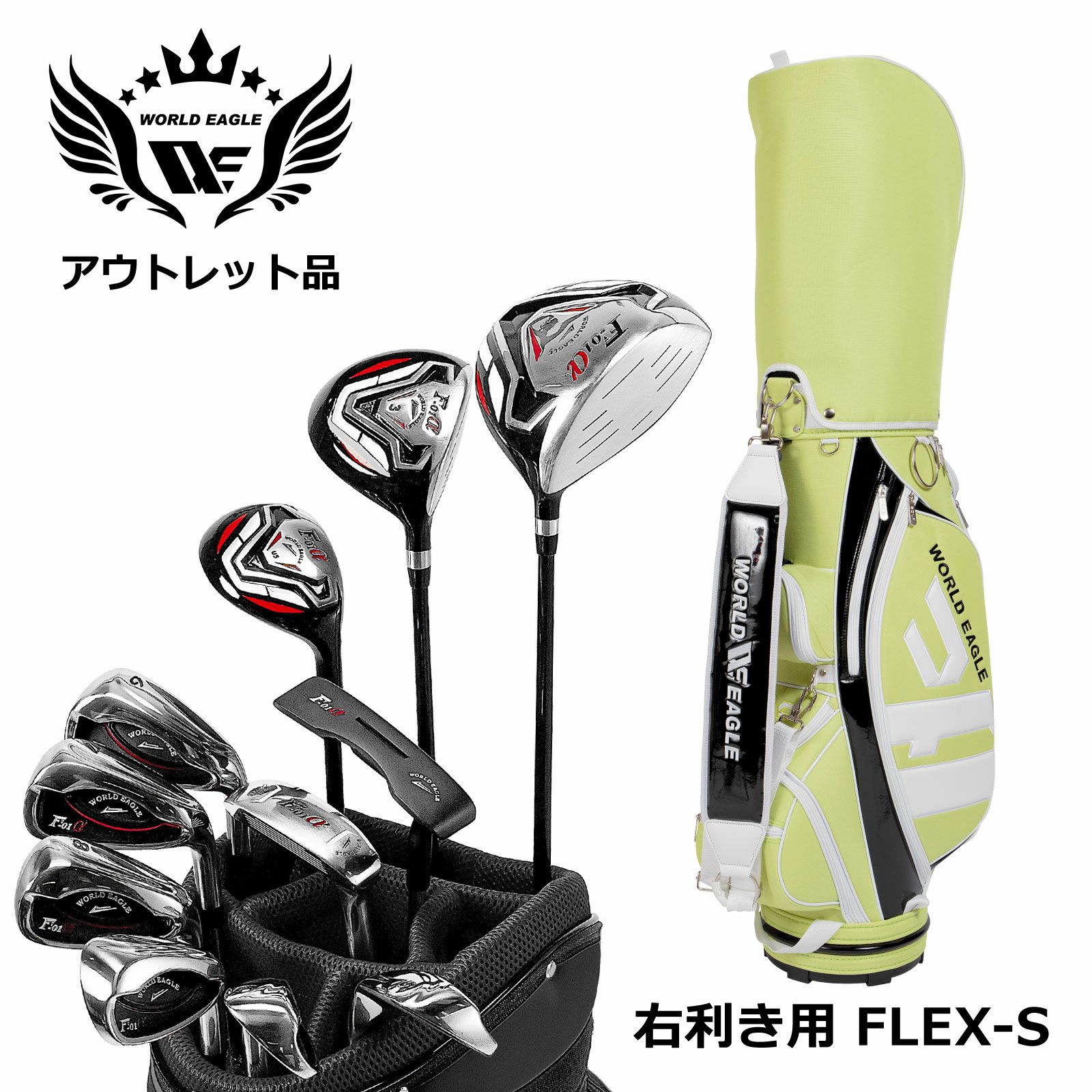 アウトレット わけあり 展示品 WE クロスモデル F-01αメンズゴルフクラブセット CBR3 ライムブラック付き 右利き用S