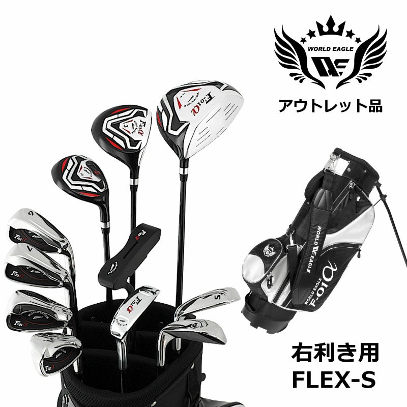 アウトレット 訳あり メンズゴルフセット ワールドイーグル クロスモデル F-01α フルセット 右利き用 フレックスS ブラックシルバーバッグ