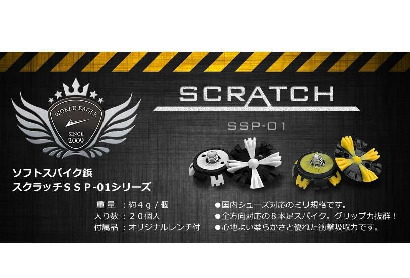 ワールドイーグル 飛距離アップは脚元から!ソフトスクラッチスパイク SSP-01 ミリタイプシューズ鋲 20ヶ入り オリジナルレンチ付き!