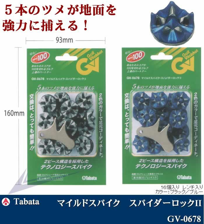 TABATA タバタ マイルドスパイク スパイダーロックII 16個入 ブラック/ブルー GV-0678 【IR】