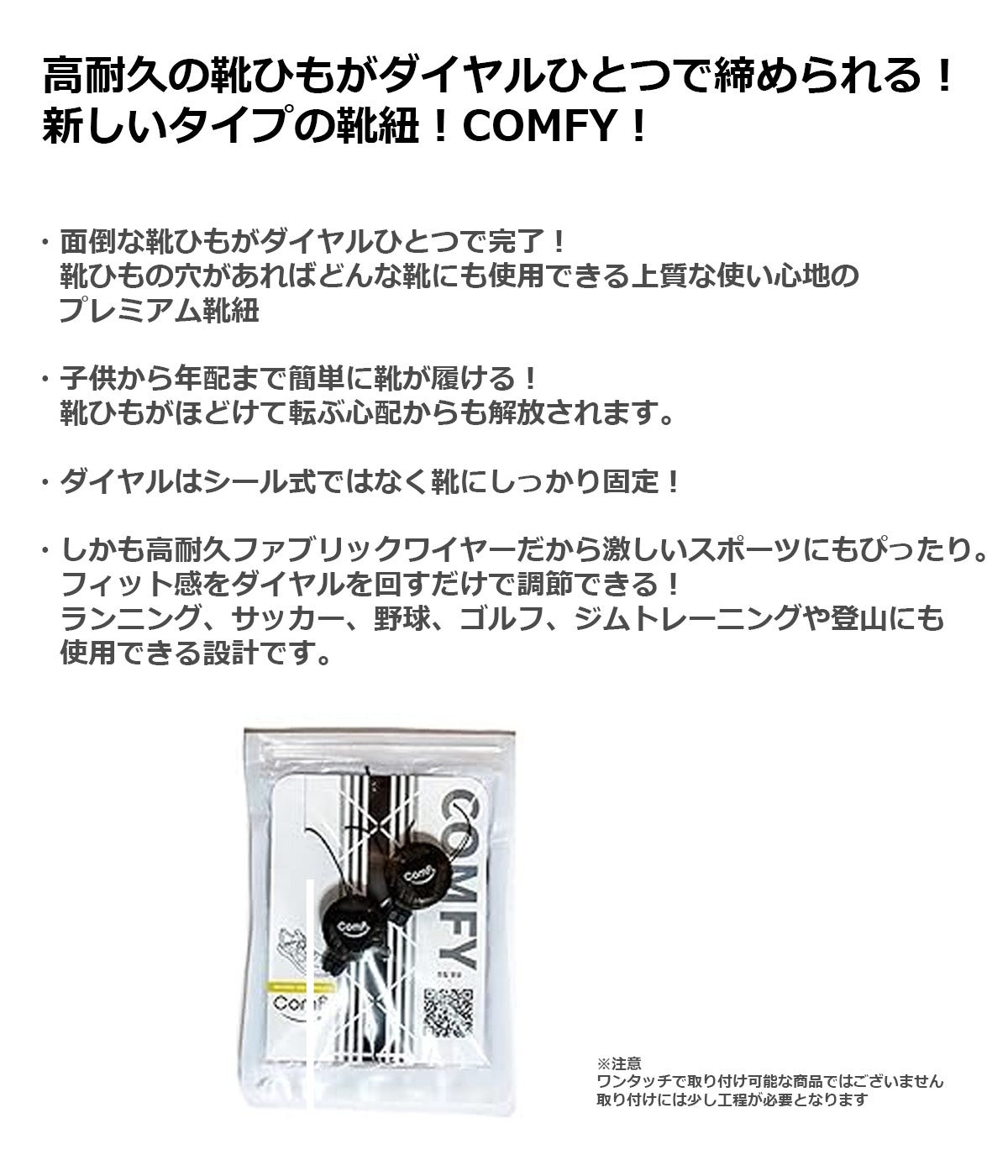 どんな靴もワイヤーダイヤル式に!新しいタイプの靴紐 COMFY! 【IR】