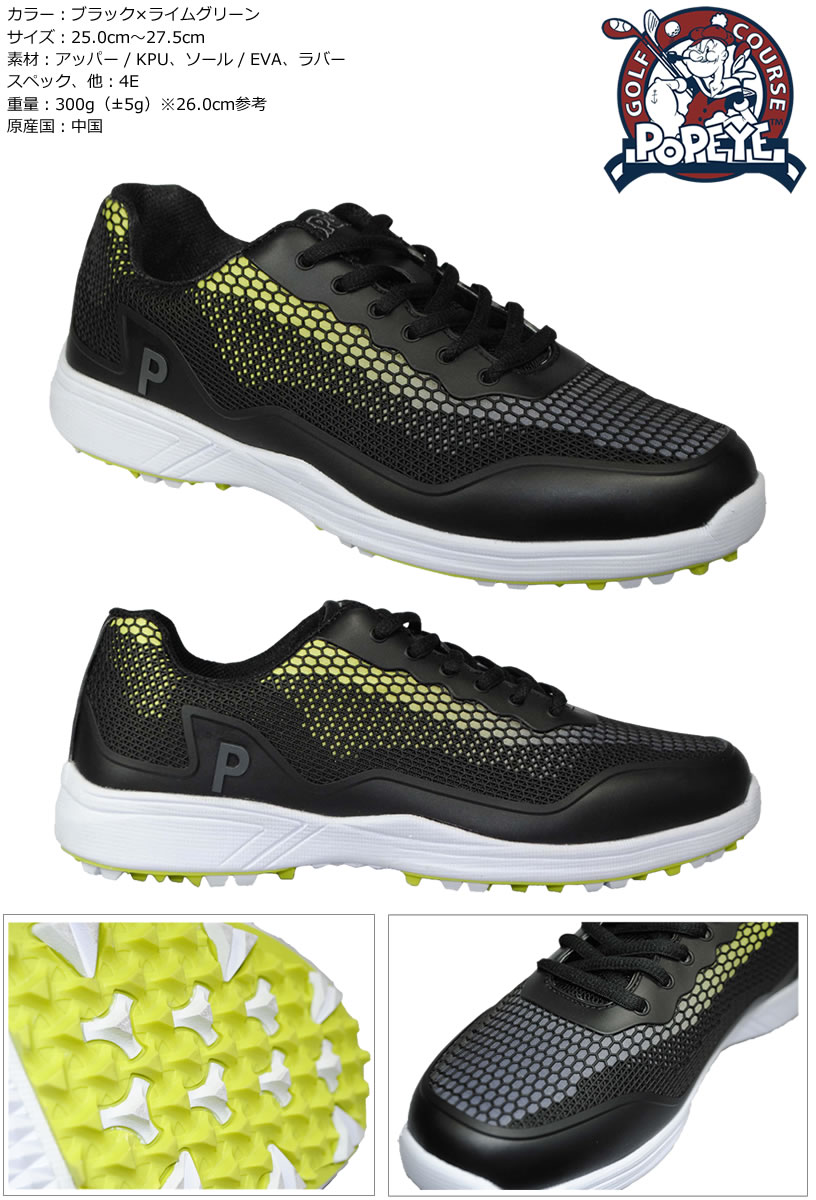 ポパイ ゴルフシューズ ブラック×ライムグリーン PESH-1773 【IR】