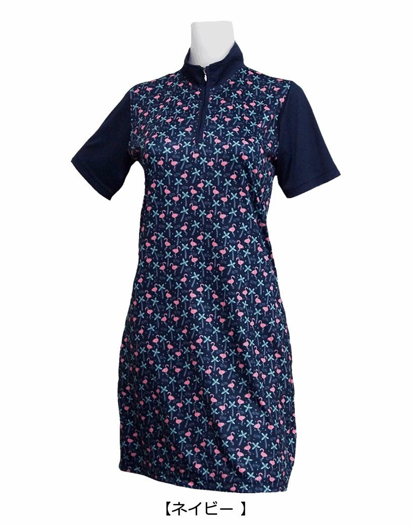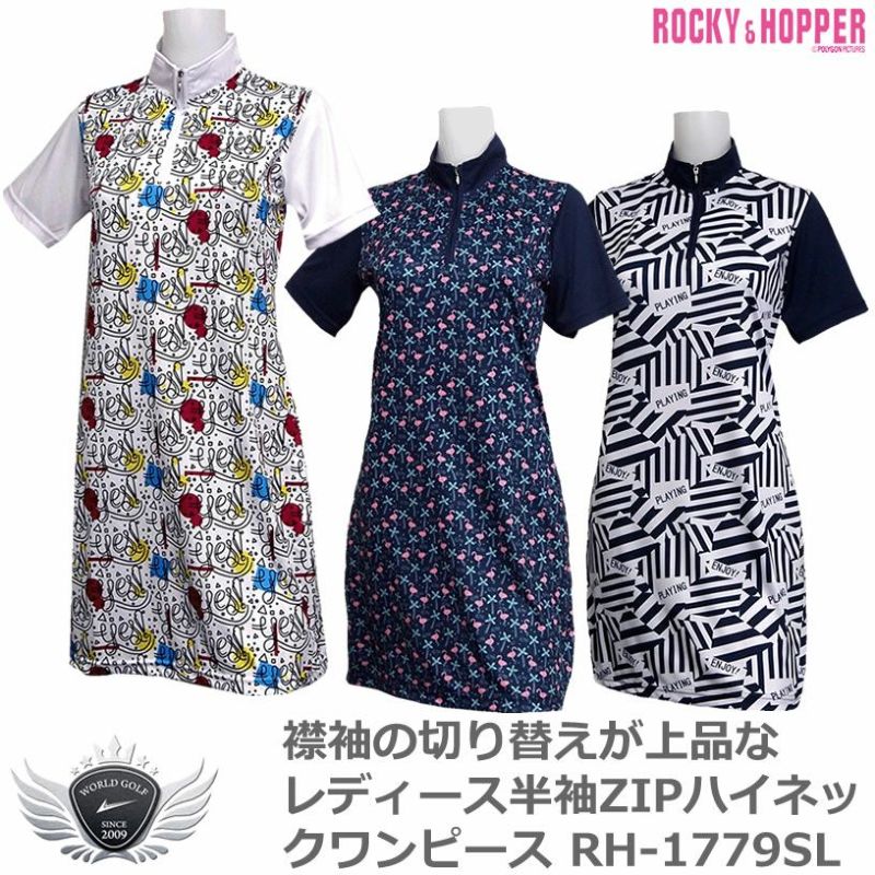 ロッキー&ホッパー 襟袖の切り替えが上品 レディース 半袖 ZIP ハイネック ワンピース 【IR】