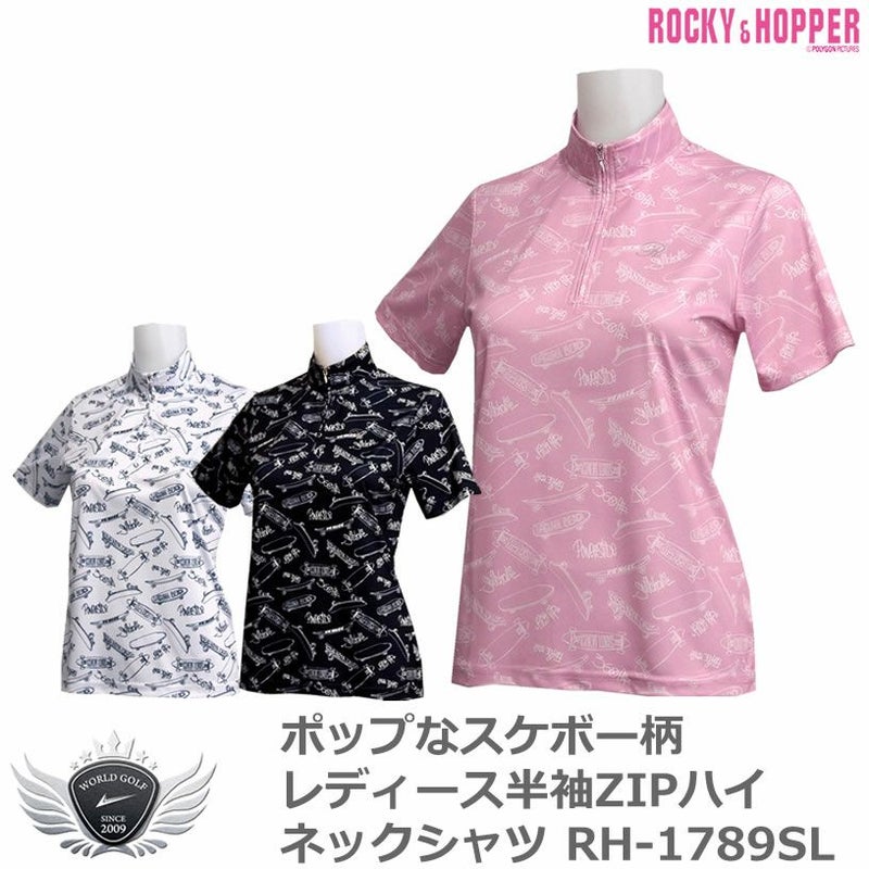 ロッキー&ホッパー ポップなスケボー柄 レディース半袖ZIPハイネックシャツ RH-1789SL 【IR】