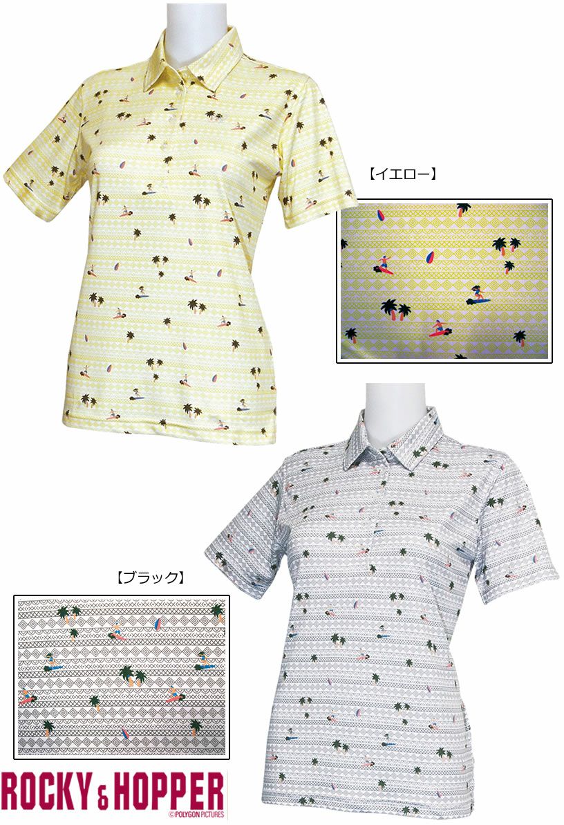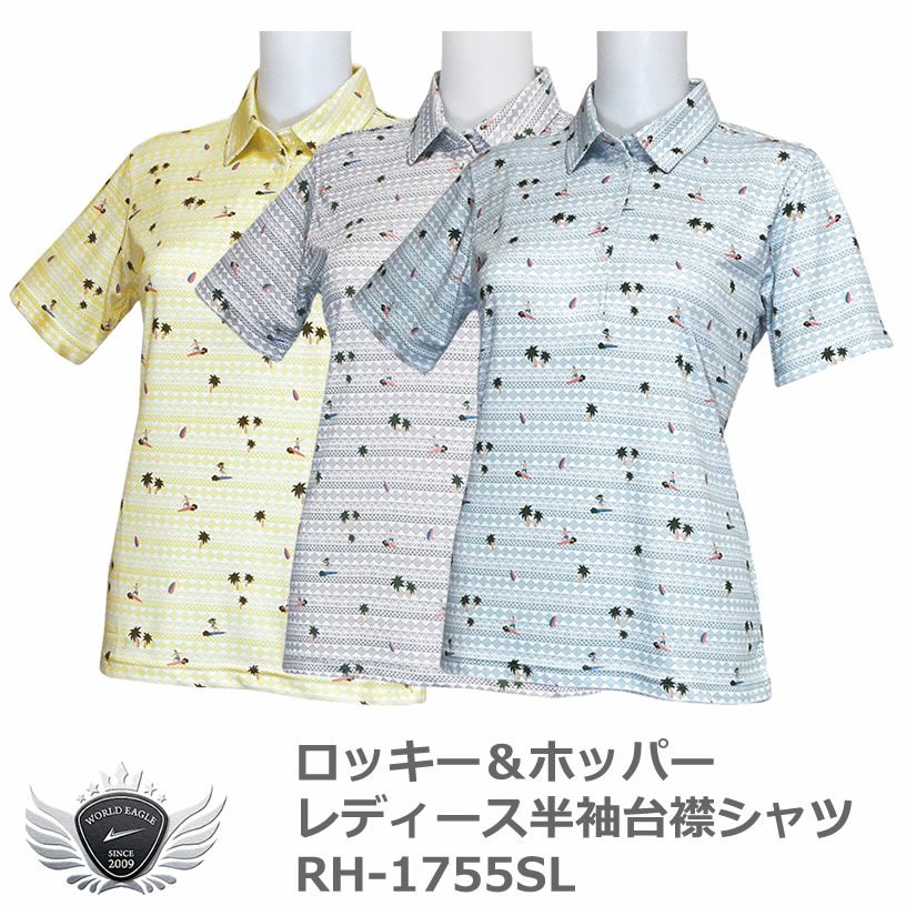 ロッキー&ホッパー サーフプリントがPOPなレディース半袖台襟シャツ RH-1755SL 【IR】