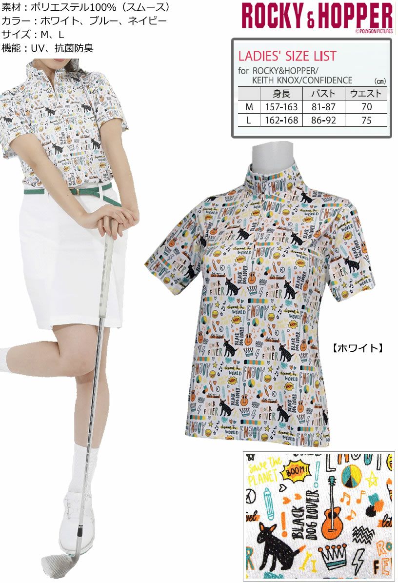 ロッキー&ホッパー ポップなメッセージロゴがかわいい半袖ZIPハイネックシャツ RH-1770SL