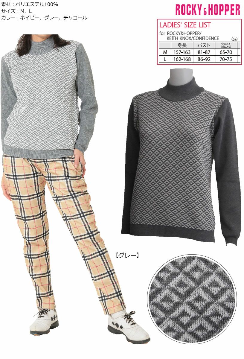 ロッキー&ホッパー コーディネートしやすいバイカラーのトライアングル柄 レディースハイネックセーター RH-2449WL