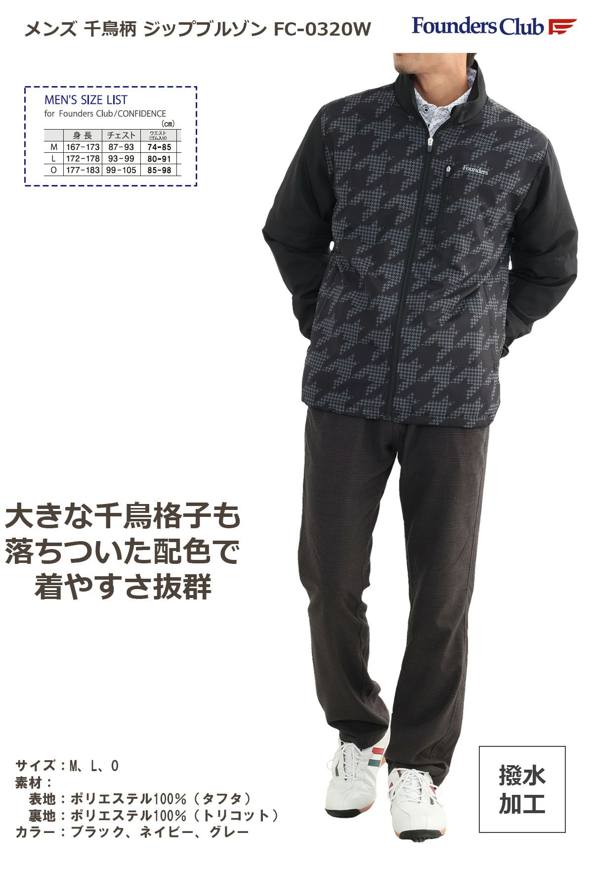ファウンダースクラブ メンズ 千鳥柄 ジップブルゾン FC-0320W