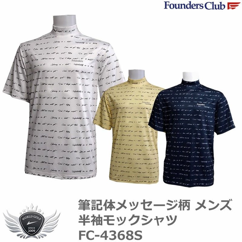 ファウンダースクラブ 筆記体メッセージ柄 メンズ半袖モックシャツ FC-4368S 【IR】