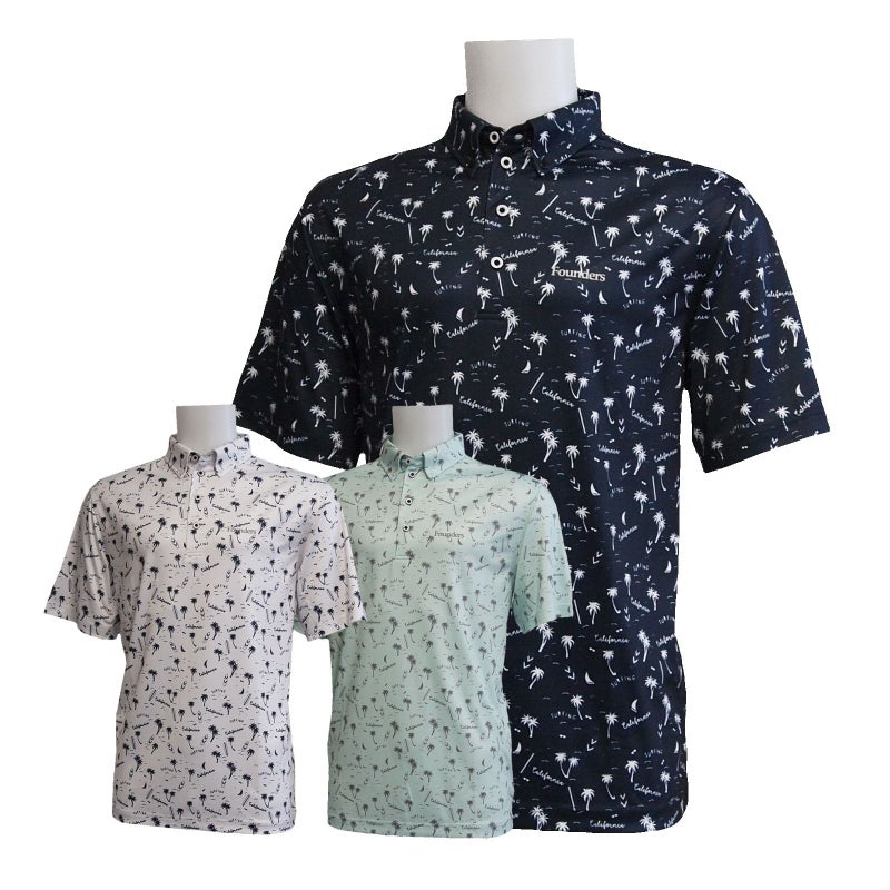 ファウンダースクラブ メンズ ヤシの木 サーフボード 総柄プリント 半袖 ボタンダウンシャツ 【IR】