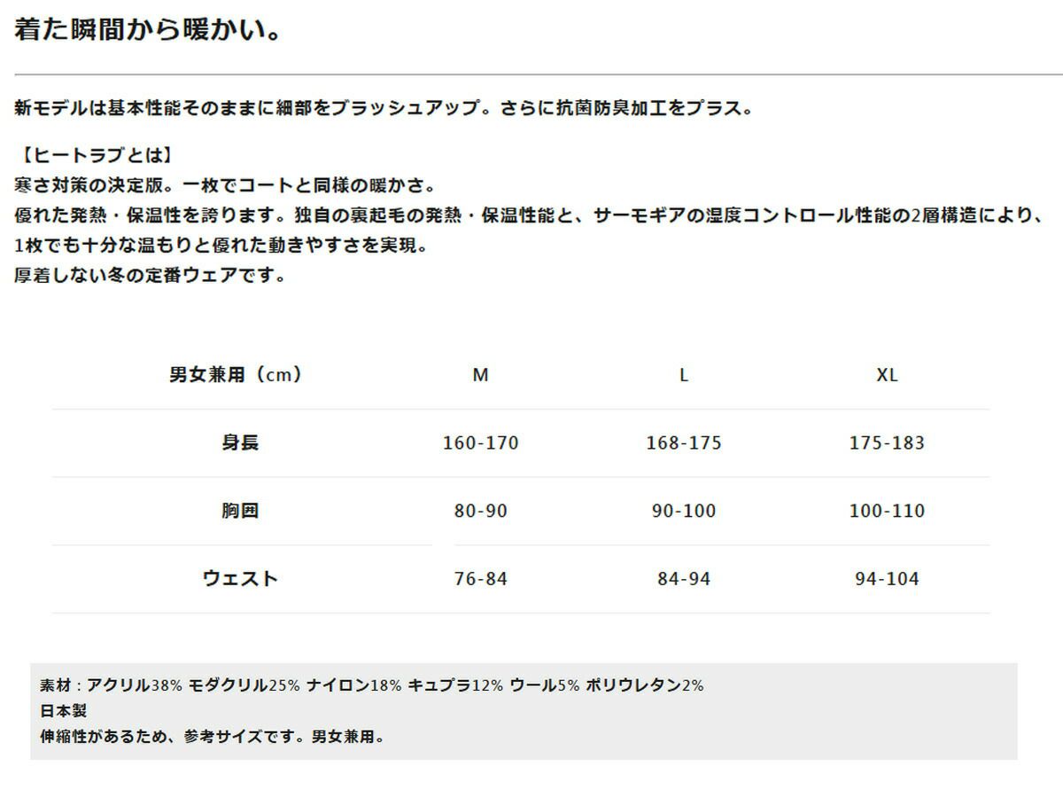 速暖。着た瞬間から暖かい。