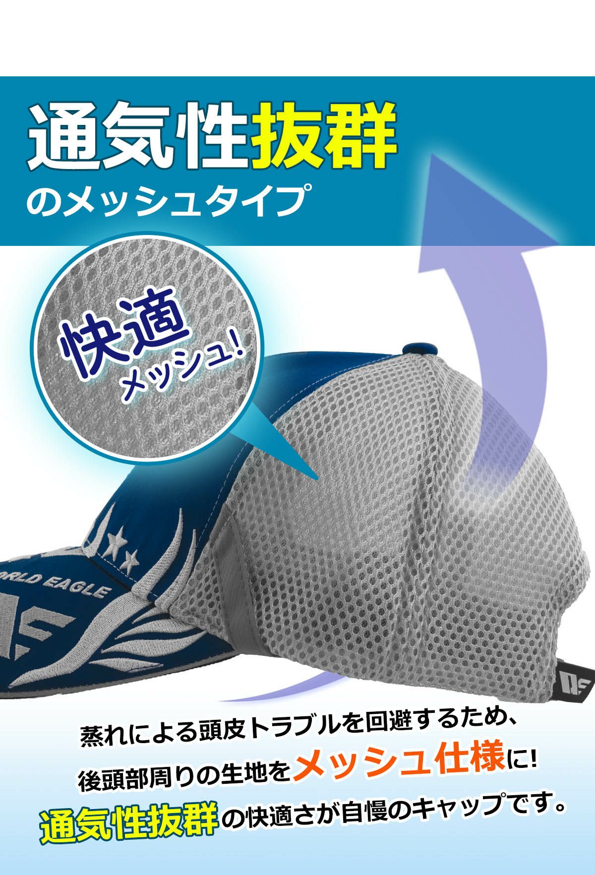 新春スイングSALE ワールドイーグル サングラスホルダー付きメッシュキャップ メンズ レディース WE-BLCP-WD
