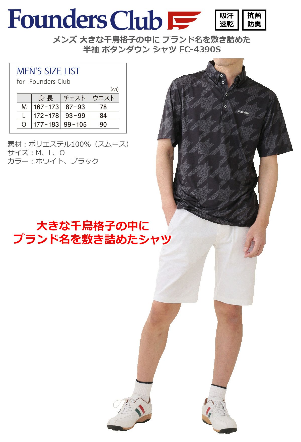 ファウンダースクラブ メンズ 大きな千鳥格子の中に ブランド名を敷き詰めた 半袖 ボタンダウン シャツ 【IR】