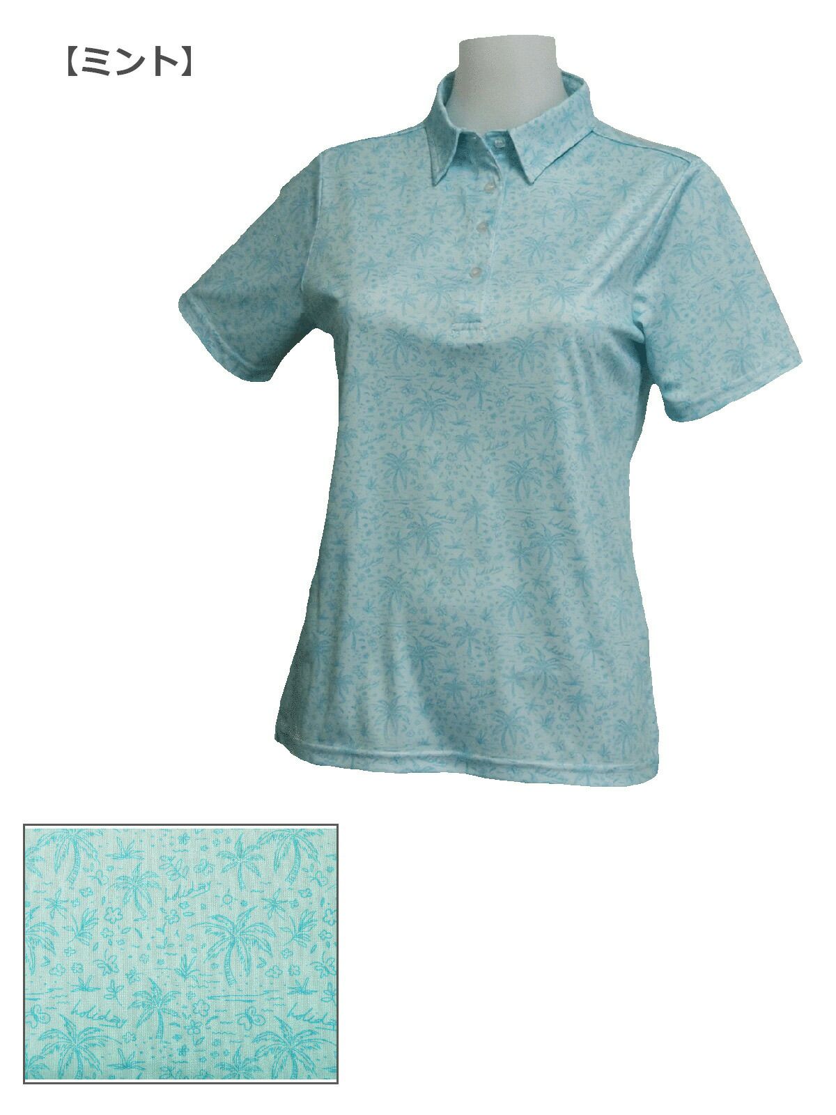 ロッキー&ホッパー レディス 花とヤシ柄が可愛い リゾート感たっぷり 半袖 ZIP ハイネック シャツ 【IR】