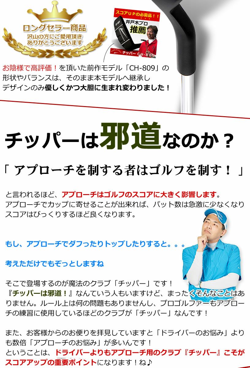 ゴルフ チッパー バンカー越えも可能な角度 35度 45度 55度の3種類 ラフもバンカー越えやバンカー脱出も可能 その実力ゆえに邪道と言われる人気のクラブ パターと同じ打ち方 距離稼ぎ スコアアップ 初心者の強い味方