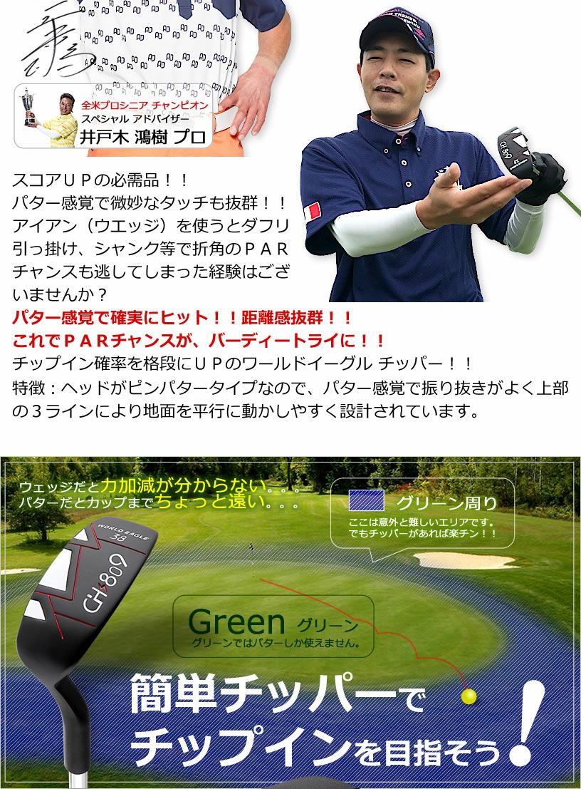 右用?左用? 必見!スコアアップ! 両打ちタイプ チッパー! バンカーやラフなどグリーン周りのショットを簡単に!初心者から上級者まで幅広く!アプローチはウェッジやパターは使わずチッパーで確実に! ワールドイーグル 右用?左用? 必見!スコアアップ!両打ちタイプ チッパー!バンカーやラフなどグリーン周りのショットを簡単に!初心者から上級者まで幅広く!アプローチはウェッジやパターは使わずチッパーで確実に!【お試し】
