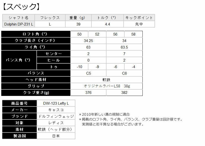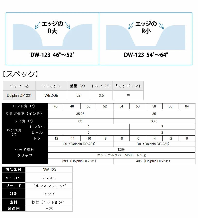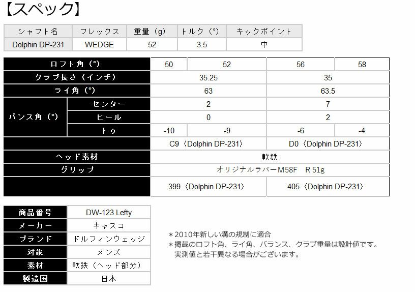 キャスコ DW-123 ドルフィンウェッジ ストレートネック Dolfhin DP-231L仕様