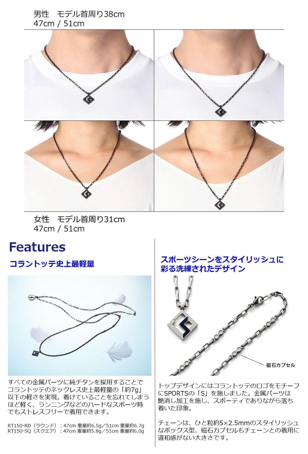 コラントッテSPORTS PRO スポーツ プロ マグチタンネックレス RT150-SQ チタン×ブラック 【IR】